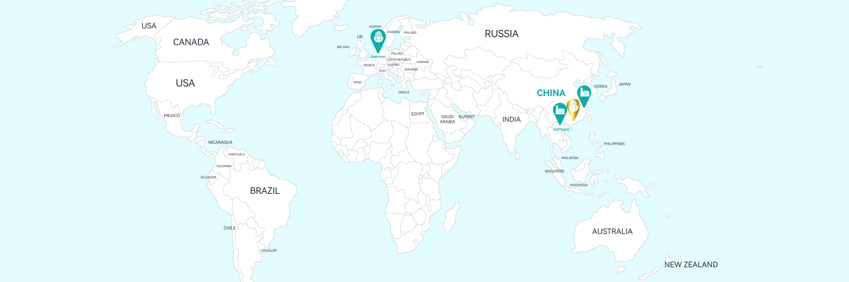 We are experiencing rapid growth! We have 36 distribution locations worldwide, with our headquarters in China and a branch office in Germany.