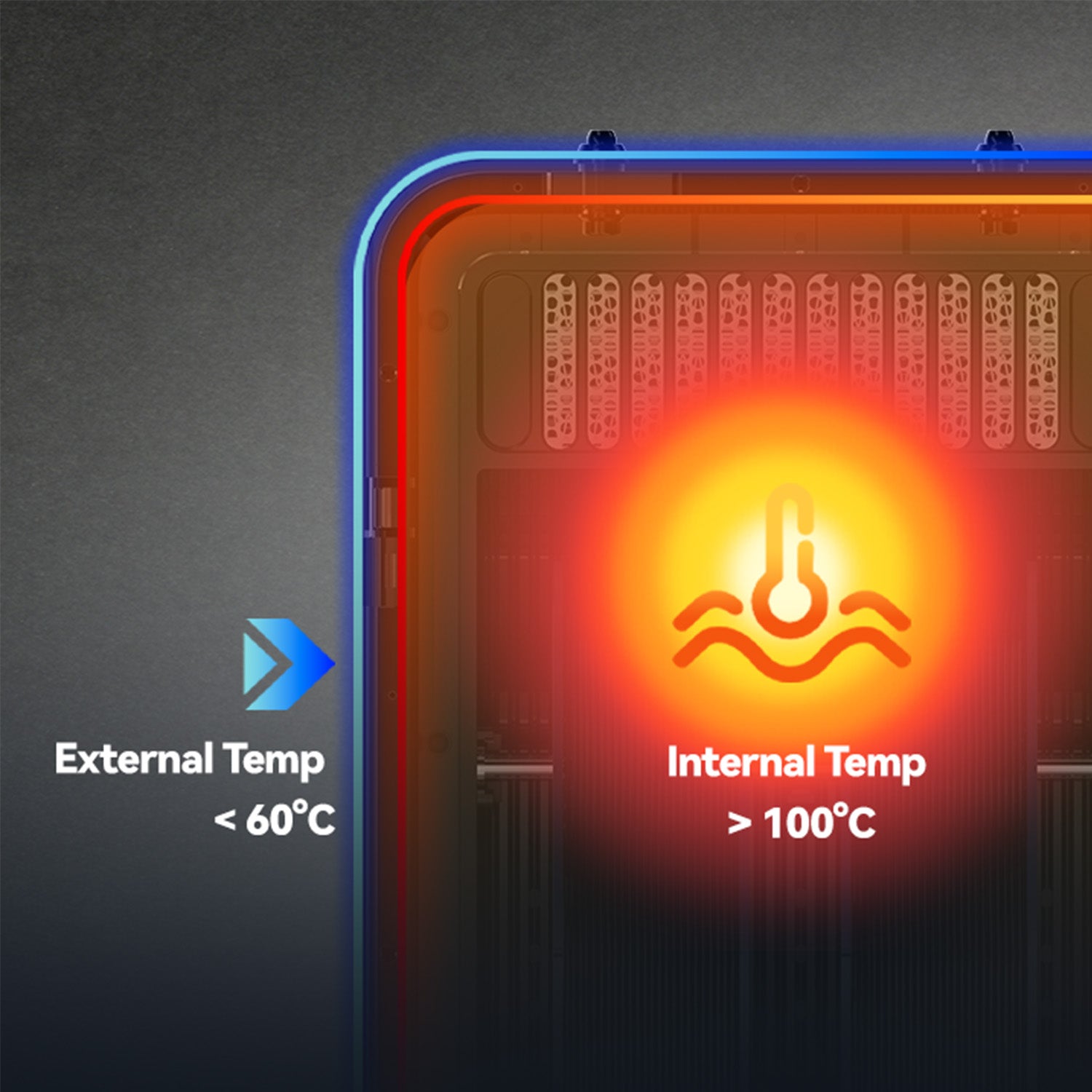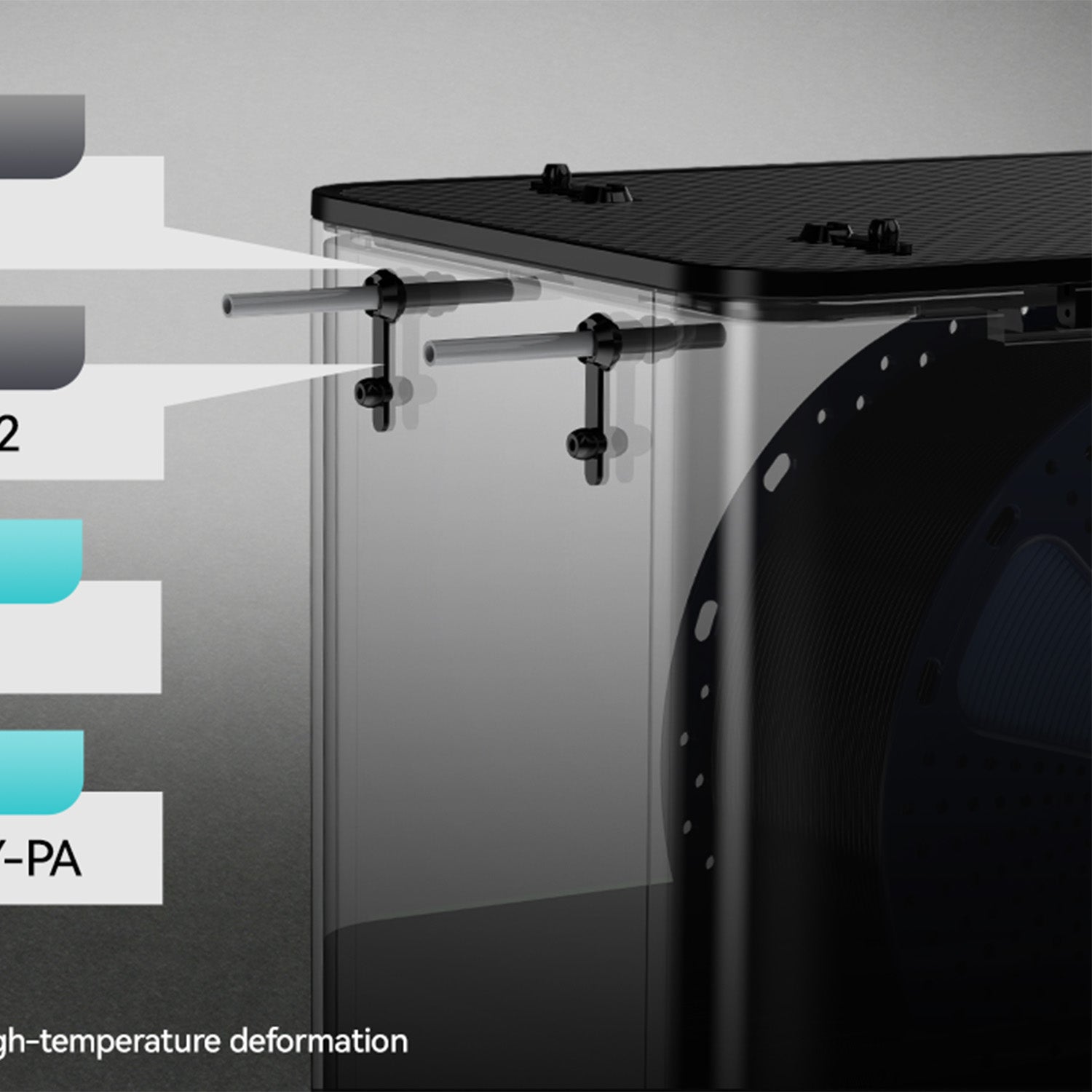 业界首创的 110°C 高温干燥能力,旨在提供卓越的退火性能。这项创新显著提高了工程级 3D 打印部件的机械强度,使其成为满足高性能和专业应用需求的理想解决方案。