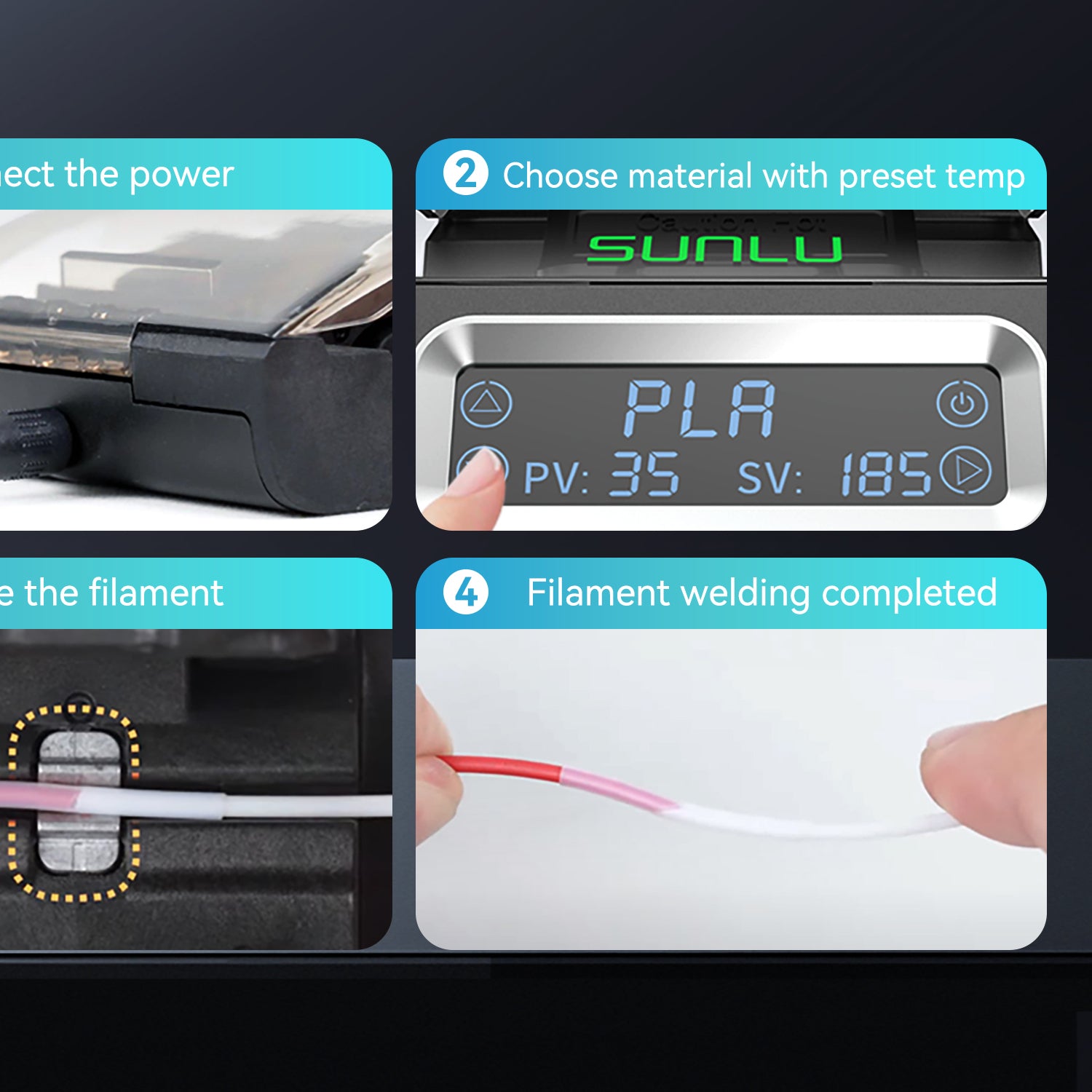 无需再担心3D打印线盘尾料的浪费,耗材熔接器让每一段线材都得以充分利用。不仅减少了尾料浪费的发生,而且还可以轻松的将同种材质但不同颜色的线材熔接在一起,开启多彩创意打印新时代。