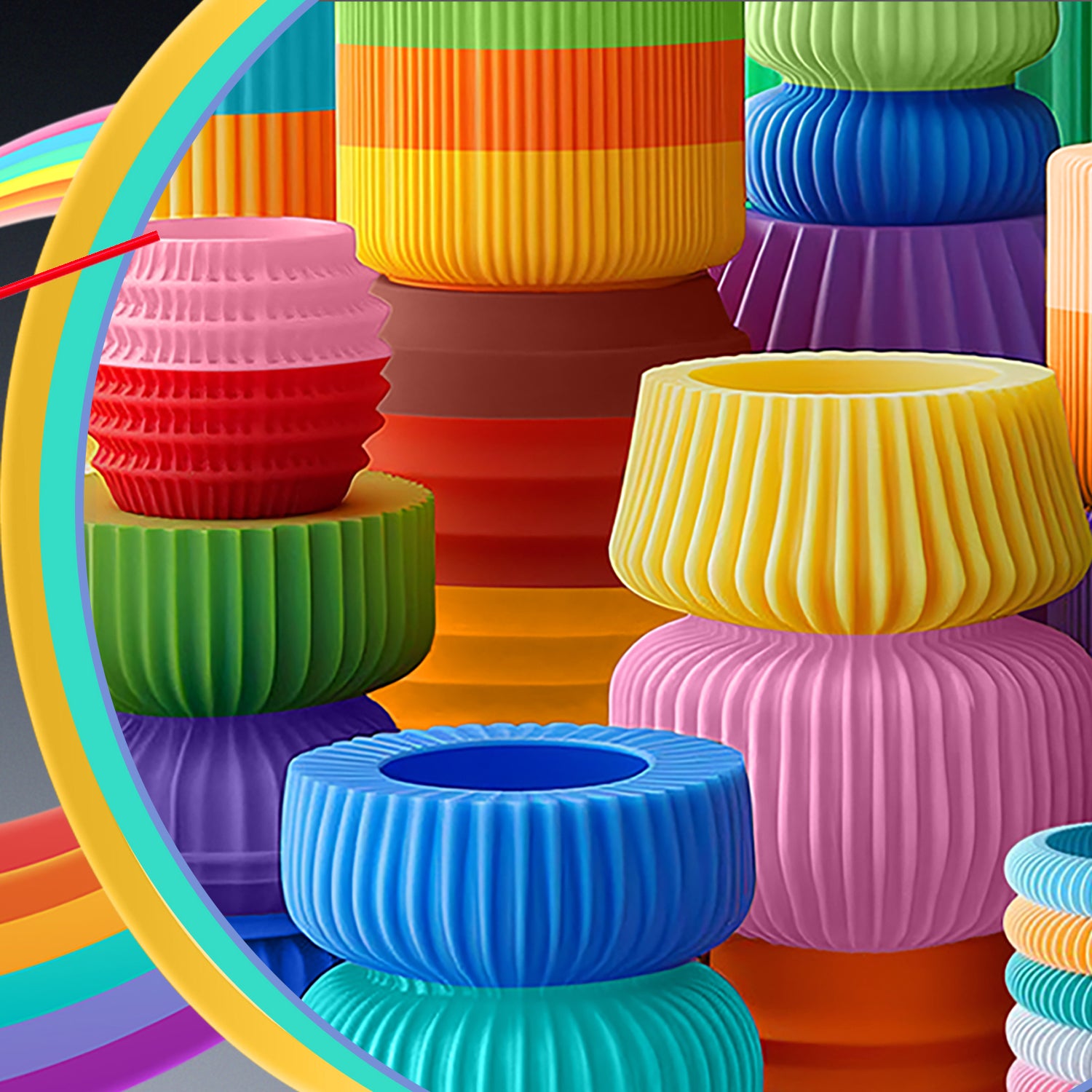 无缝连接相同材质但不同颜色的细丝,以实现充满活力和想象力的设计。