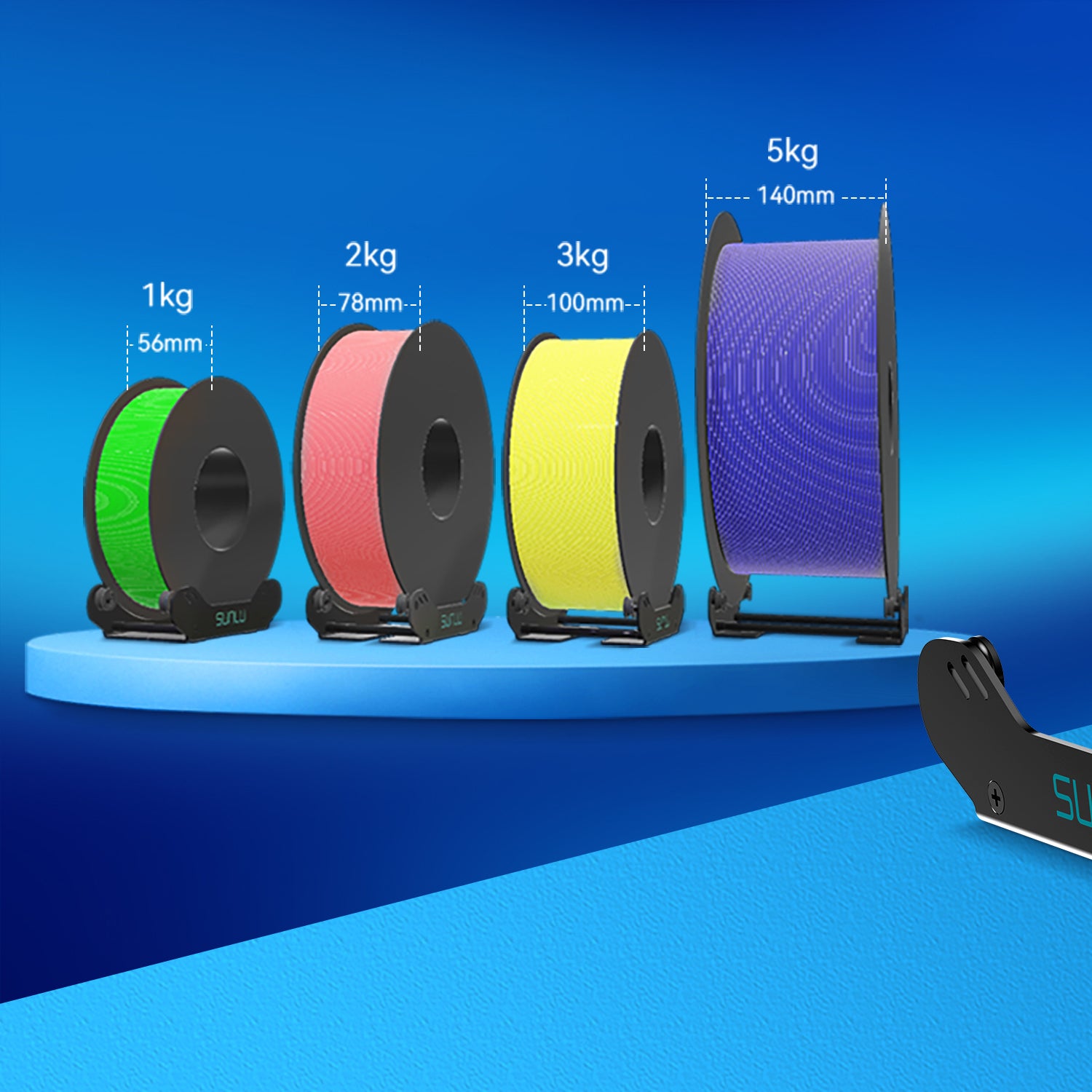 可轻松从 56 毫米调整到 140 毫米,从而轻松切换各种线轴尺寸的细丝。