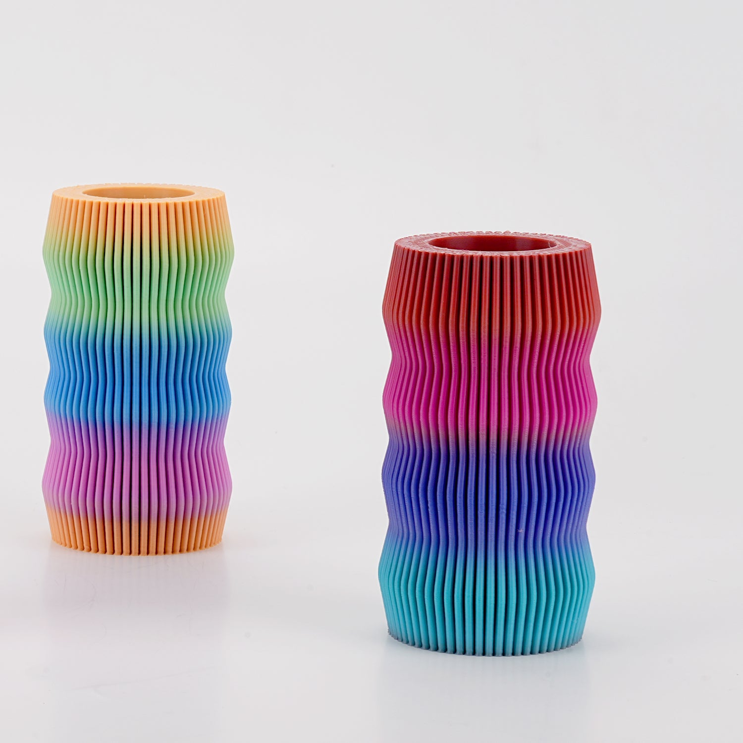 PLA彩虹是一种颜色渐变的线材,颜色在每8米或16米处渐变过渡,打印出的模型从底部向上展现出绚丽的渐变彩虹色。